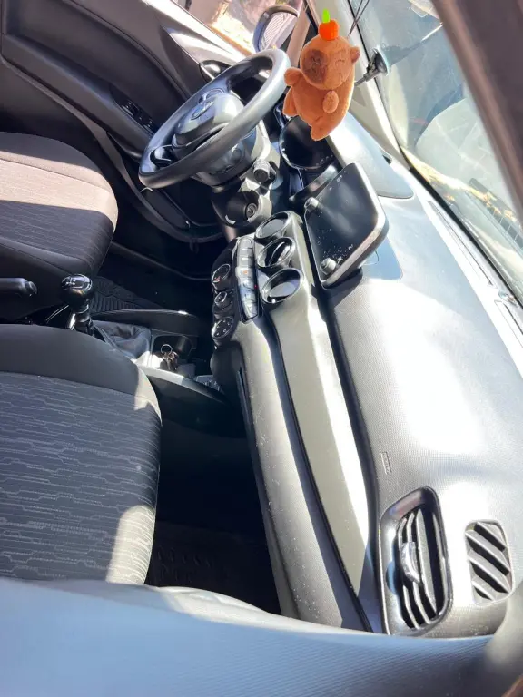 O carro é completo, incluindo ar condicionado, vidros e travas elétricas, sistema de som, conexão USB e bluetooth.