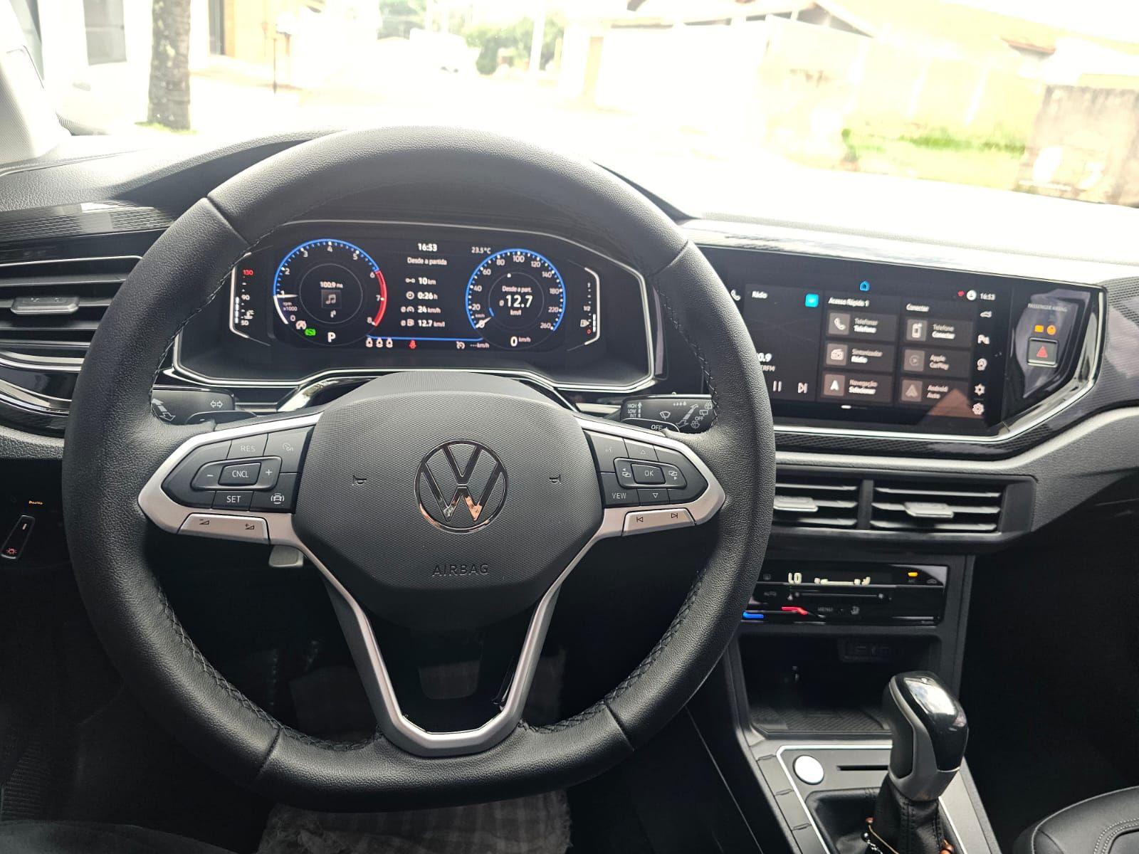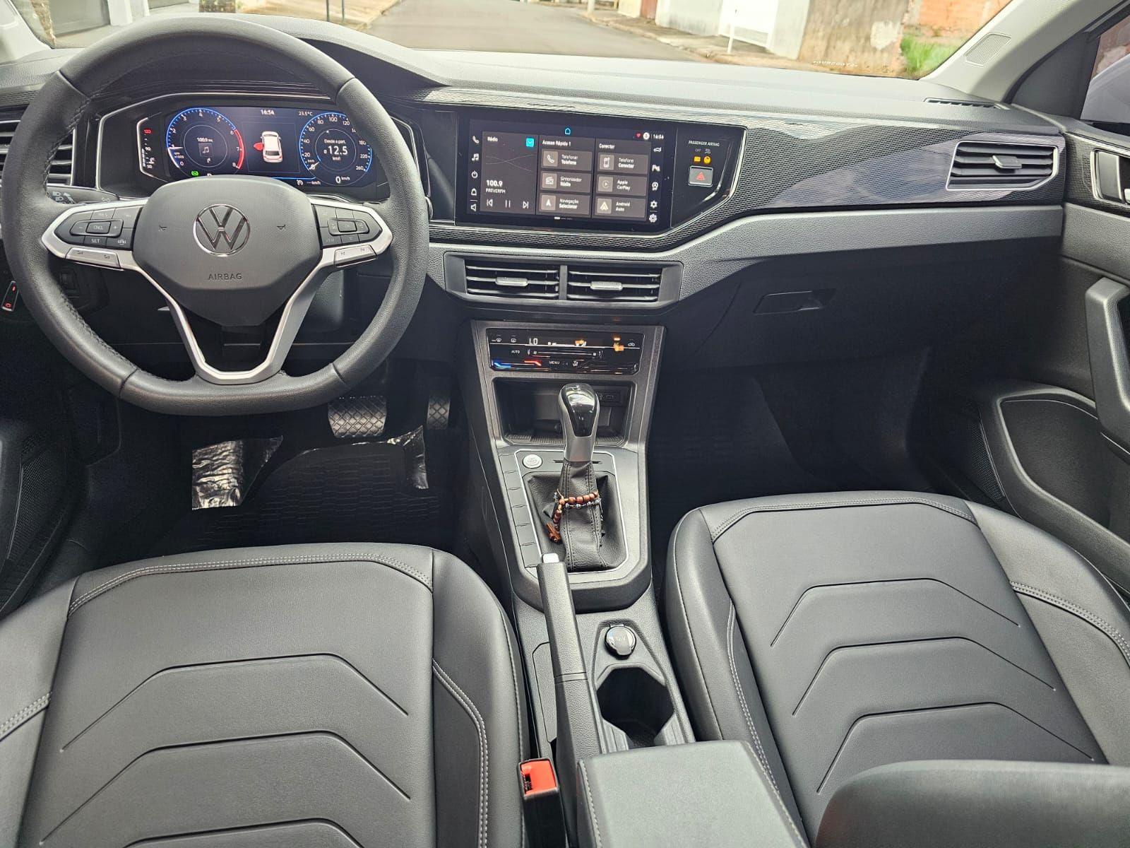o volkswagen polo highline 1.0 tsi 2025 e a escolha perfeita para quem busca um hatch compacto que une desempenho agil e economia eficiente. seu motor turbo entrega potencia na medida certa, garantindo respostas rapidas e uma conducao prazerosa tanto na cidade quanto na estrada. com consumo otimizado, o polo oferece autonomia confortavel para o dia a dia, enquanto o porta-malas de 300 litros acomoda suas bagagens com praticidade. o espaco interno e pensado para o conforto dos cinco ocupantes, ideal para familias ou quem precisa de versatilidade. a seguranca e prioridade, com freios abs, controle de estabilidade e tracao, alem de airbags multiplos e assistente de partida em rampa, proporcionando tranquilidade em qualquer situacao. sensores de estacionamento dianteiro e traseiro facilitam as manobras, enquanto a frenagem automatica em manobras aumenta a protecao. no conforto e tecnologia, o polo se destaca com ar-condicionado automatico, bancos revestidos em couro, controle automatico de velocidade e sistema start-stop que ajuda na economia de combustivel. a central multimidia com espelhamento de celular e carregador por inducao mantem voce conectado com praticidade. um hatch moderno, eficiente e completo, que oferece excelente custo-beneficio para quem valoriza conforto, seguranca e tecnologia em um veiculo compacto.