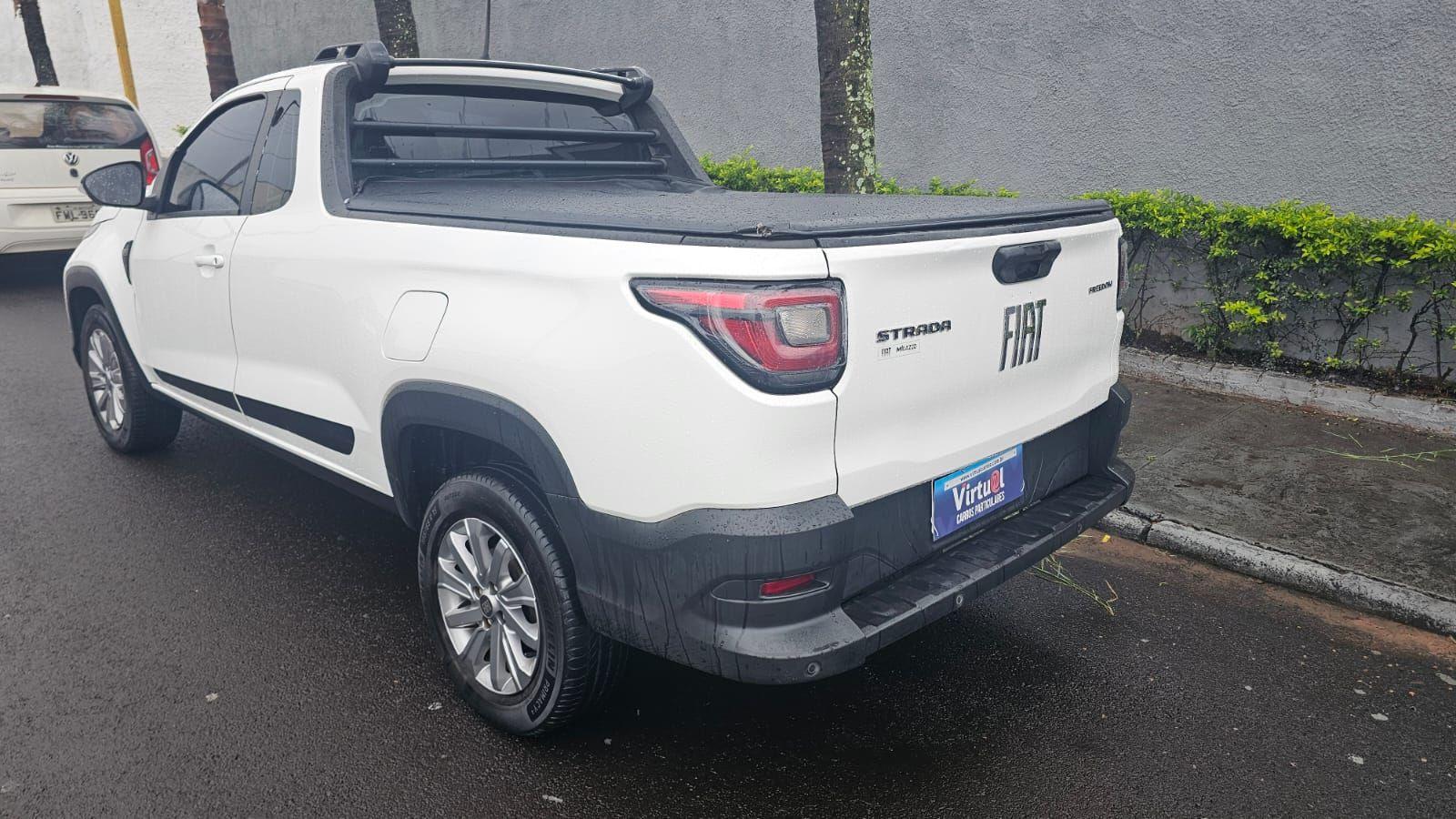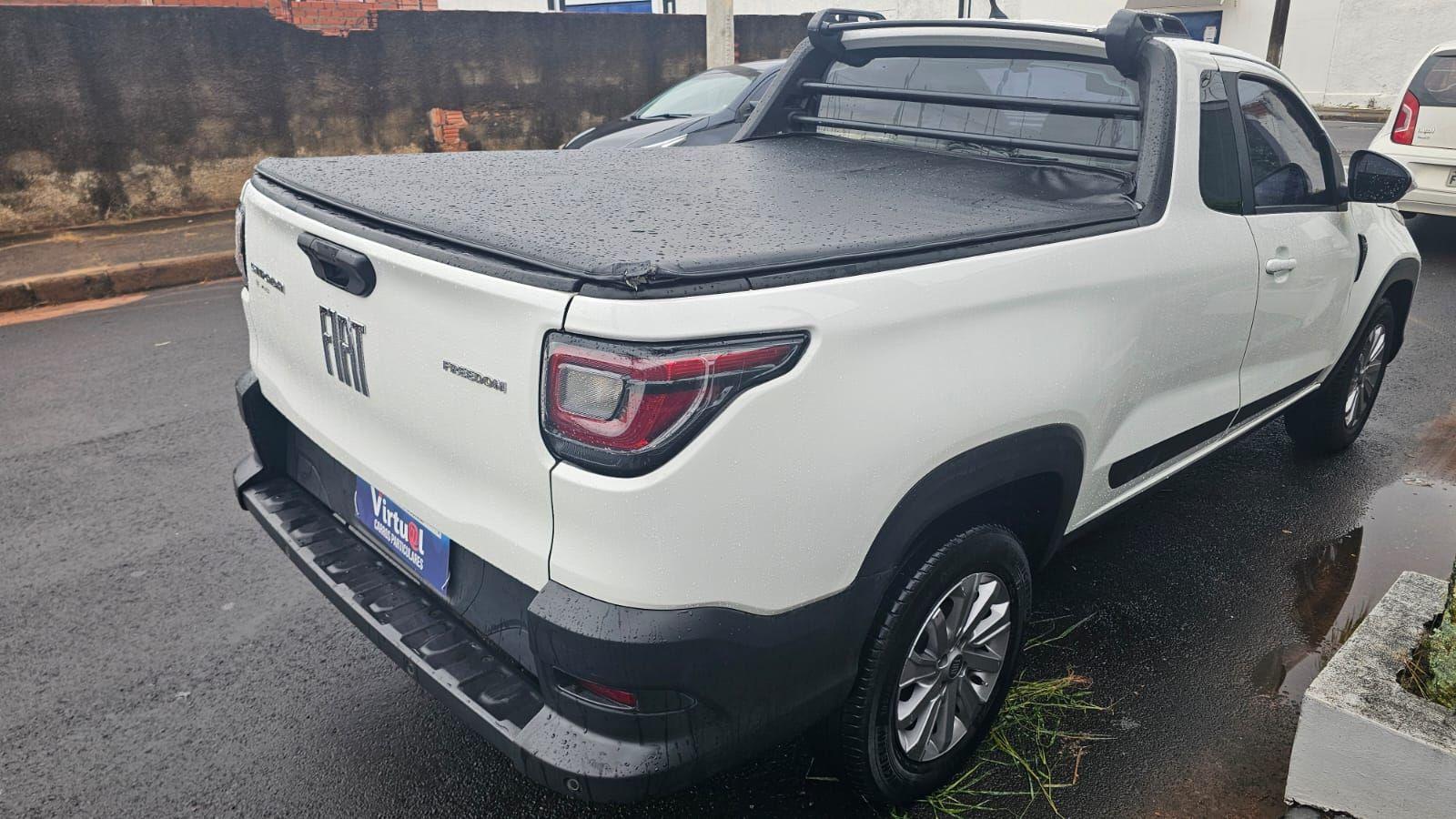 fiat strada freedom 1.3 cs 2022 e para quem precisa de um veiculo de trabalho robusto, economico e confiavel, mas que tambem entrega conforto e tecnologia suficientes para o uso diario. trata-se da escolha de quem entende que produtividade depende de mobilidade eficiente e que uma picape compacta moderna pode oferecer capacidade de carga, resistencia mecanica e baixo custo operacional sem abrir mao de dirigibilidade e praticidade na cidade. debaixo do capo esta o motor 1.3 firefly flex de quatro cilindros, reconhecido pela eficiencia e durabilidade, capaz de entregar ate 109 cv com etanol e 101 cv com gasolina, com torque de ate 14,2 kgfm a 3.500 rpm. o conjunto trabalha em parceria com um cambio manual de cinco marchas e tracao dianteira, resultando em uma conducao equilibrada e eficiente. o desempenho e consistente para a proposta da picape, com aceleracao de 0 a 100 kmh em cerca de 11 segundos e velocidade maxima de 168 kmh. no aspecto financeiro, a strada reforca sua reputacao como investimento inteligente. o consumo chega a 12,9 kml na cidade e 14,6 kml na estrada com gasolina, permitindo autonomia rodoviaria de ate 803 quilometros gracas ao tanque de 55 litros. as revisoes programadas contribuem para um custo de propriedade previsivel e competitivo, algo essencial para quem utiliza o veiculo como ferramenta de trabalho ou ativo produtivo. projetada com foco em funcionalidade, a picape oferece uma cacamba com capacidade volumetrica de 1.354 litros e carga util de ate 720 kg, numeros que demonstram sua vocacao para transporte de equipamentos, mercadorias ou materiais de obra. a distancia entre-eixos de 2,73 metros favorece a estabilidade em carga, enquanto a altura livre do solo de 207 mm contribui para enfrentar pisos irregulares com seguranca e tranquilidade. em tecnologia e conveniencia, a strada freedom traz direcao eletrica, computador de bordo, volante multifuncional, conectividade bluetooth e entradas usb, alem de comandos eletricos de vidros e retrovisores que facilitam o uso cotidiano. sao recursos que tornam o ambiente de conducao mais pratico e funcional, aproximando a experiencia de dirigir de um padrao moderno mesmo em um veiculo voltado ao trabalho. a seguranca tambem recebe atencao com controle eletronico de estabilidade e tracao, assistente de partida em rampa, monitoramento da pressao dos pneus, sensores de estacionamento traseiro, alem de freios abs e airbags frontais. esses sistemas contribuem para uma conducao mais estavel e previsivel tanto no uso urbano quanto em rotinas profissionais. a fiat strada freedom 1.3 cs 2022 representa uma solucao eficiente para quem precisa de capacidade de carga, economia operacional e confiabilidade mecanica em um unico veiculo, consolidando-se como uma escolha segura para quem valoriza produtividade, racionalidade financeira e desempenho consistente no dia a dia.