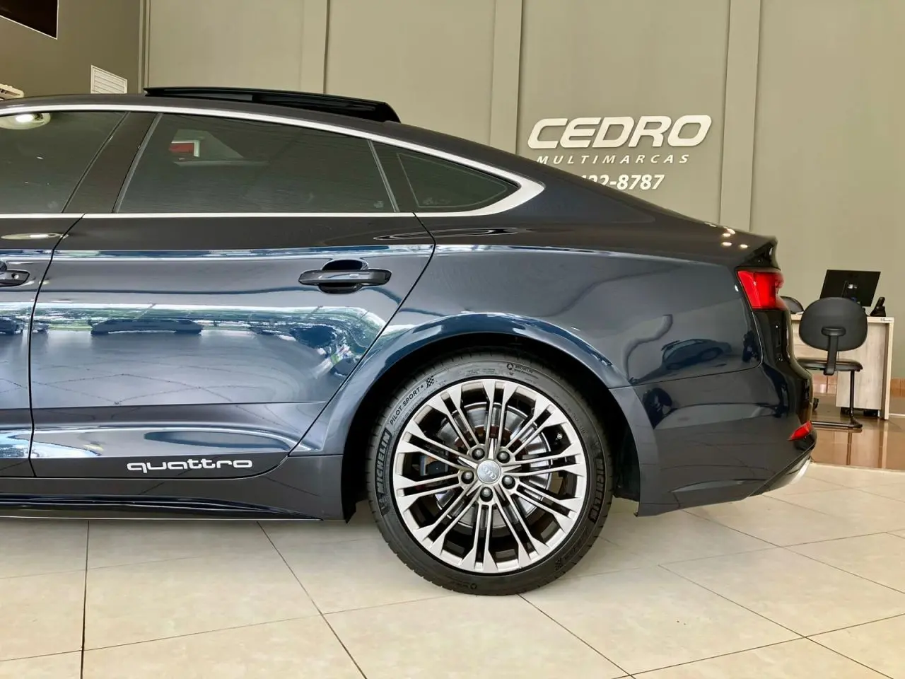 Audi A5 Sportback Ambition Plus 2.O Gasolina TFSI QUATTRO 2O18, Carro com Extrema Conservação, Teto Solar Panorâmico, Tração Integral, Central Multimídia com Conectividade e Espelhamento de Tela.