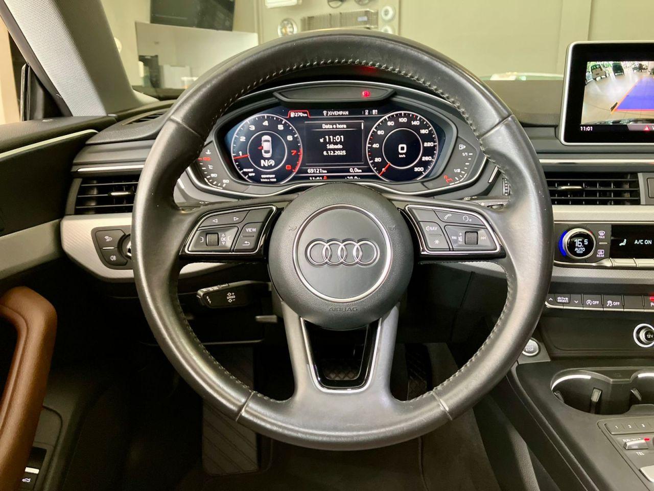 Audi A5 Sportback Ambition Plus 2.O Gasolina TFSI QUATTRO 2O18, Carro com Extrema Conservação, Teto Solar Panorâmico, Tração Integral, Central Multimídia com Conectividade e Espelhamento de Tela.