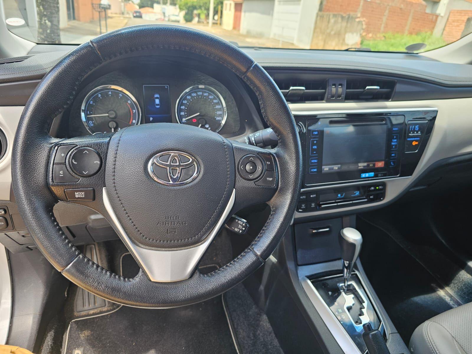 o toyota corolla xei 2.0 2018 e um seda medio que alia desempenho, conforto e seguranca para quem busca um veiculo completo e confiavel. equipado com motor 2.0 flex de 143 cv e cambio cvt, oferece uma conducao suave e eficiente, com bom desempenho para o dia a dia e viagens. com consumo equilibrado, o corolla xei garante autonomia satisfatoria tanto na cidade quanto na estrada, proporcionando economia sem abrir mao da potencia. seu interior espacoso acomoda confortavelmente cinco ocupantes, com porta-malas generoso de 470 litros para bagagens e compras. na seguranca, o modelo traz freios abs, multiplos airbags, controle de estabilidade e tracao, alem de assistente de partida em rampa e sistema isofix para cadeiras infantis, garantindo protecao para toda a familia. o conforto e destaque com ar-condicionado automatico, bancos revestidos em couro, ajustes eletricos e manuais para motorista e volante, alem de controle automatico de velocidade. a tecnologia inclui central multimidia com conexao usb e bluetooth, navegador gps, computador de bordo e volante multifuncional, tornando a experiencia a bordo pratica e conectada. um seda versatil, seguro e confortavel, ideal para quem busca qualidade e desempenho em um veiculo para o dia a dia.