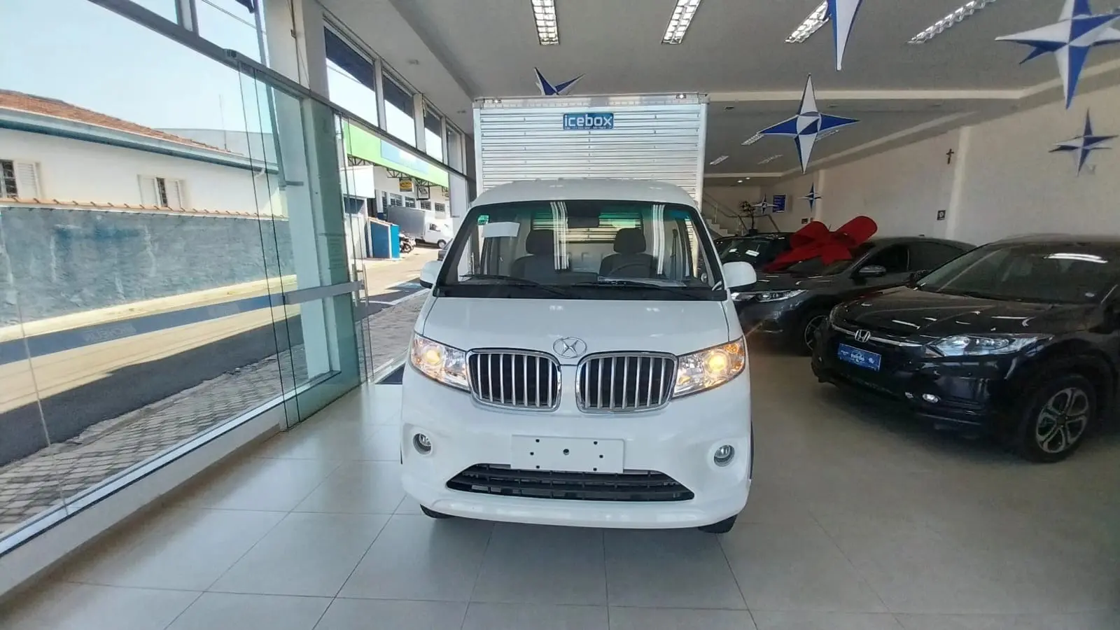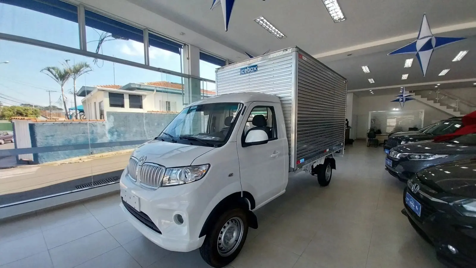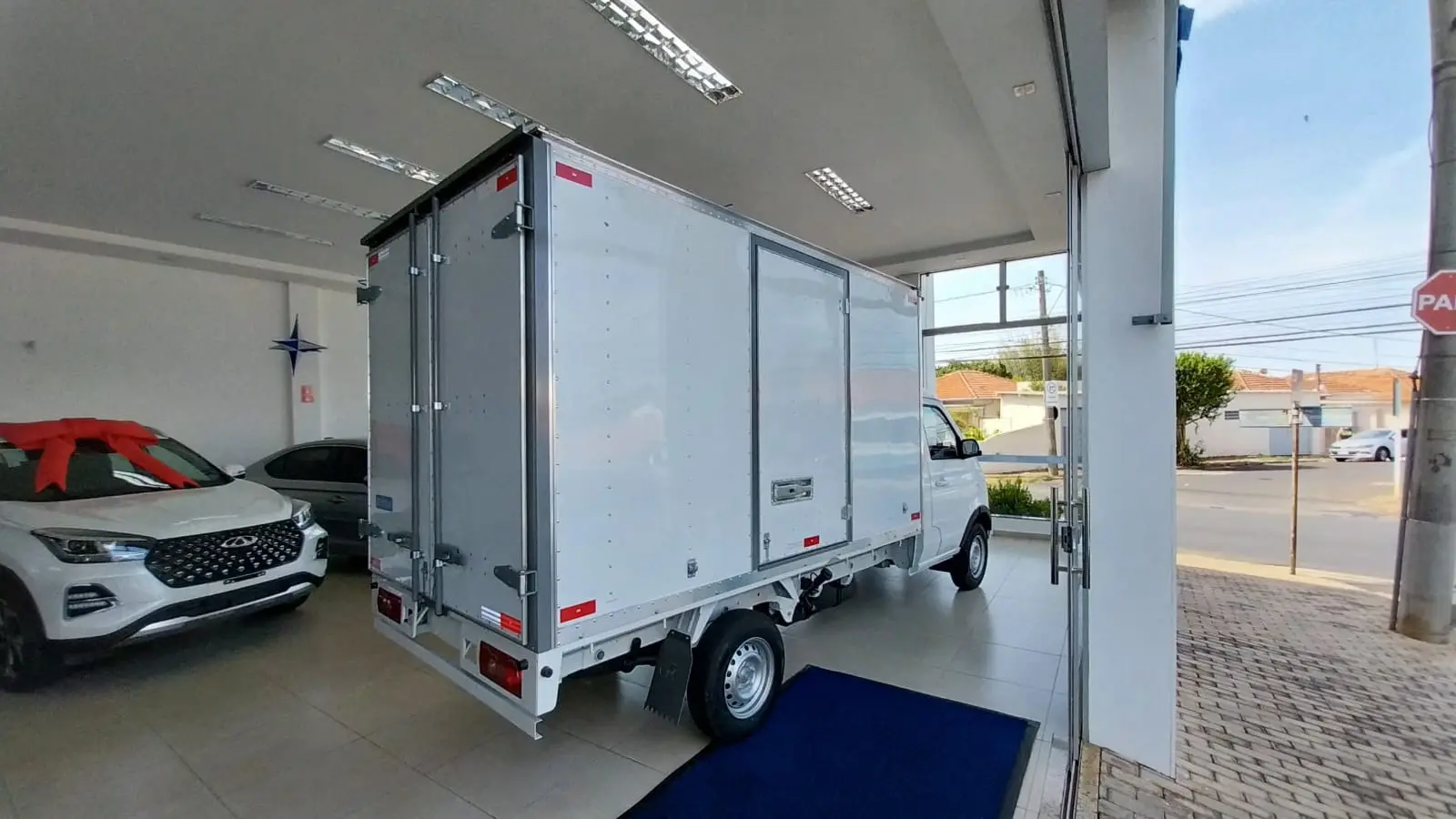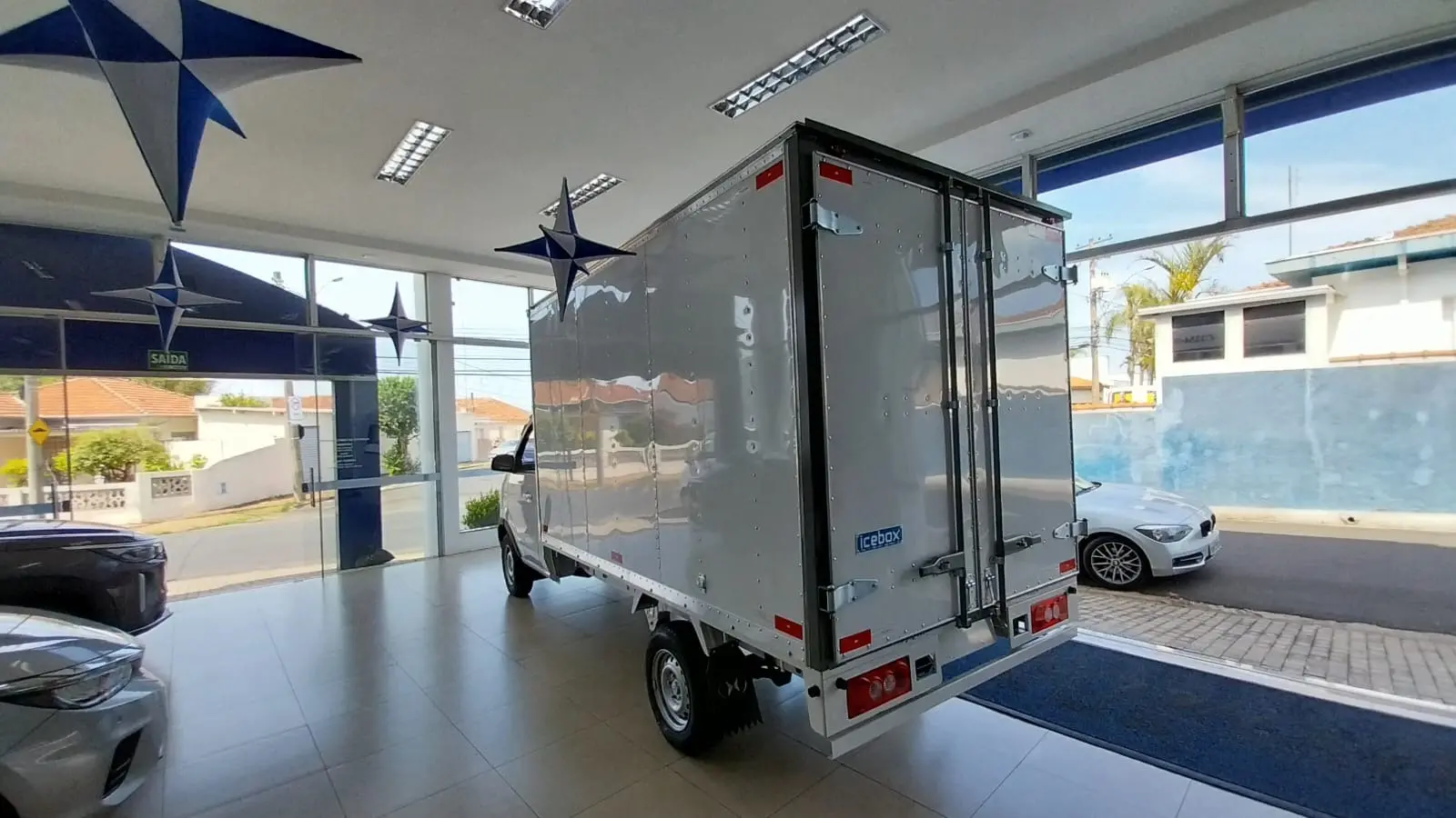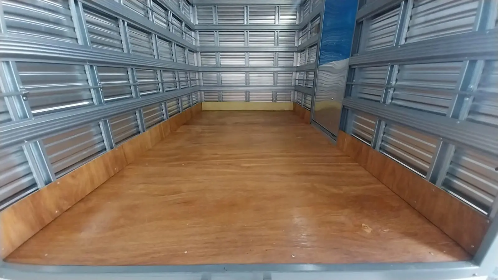 VEÍCULO OKM COM BAÚ EM ALUMINIO LISO BRANCO, PORTAS TRASEIRAS E LATERAIS COM FORRAÇÃO DE ASSOALHO EM MADEIRA. MELHOR BAÚ DO MERCADO!!!