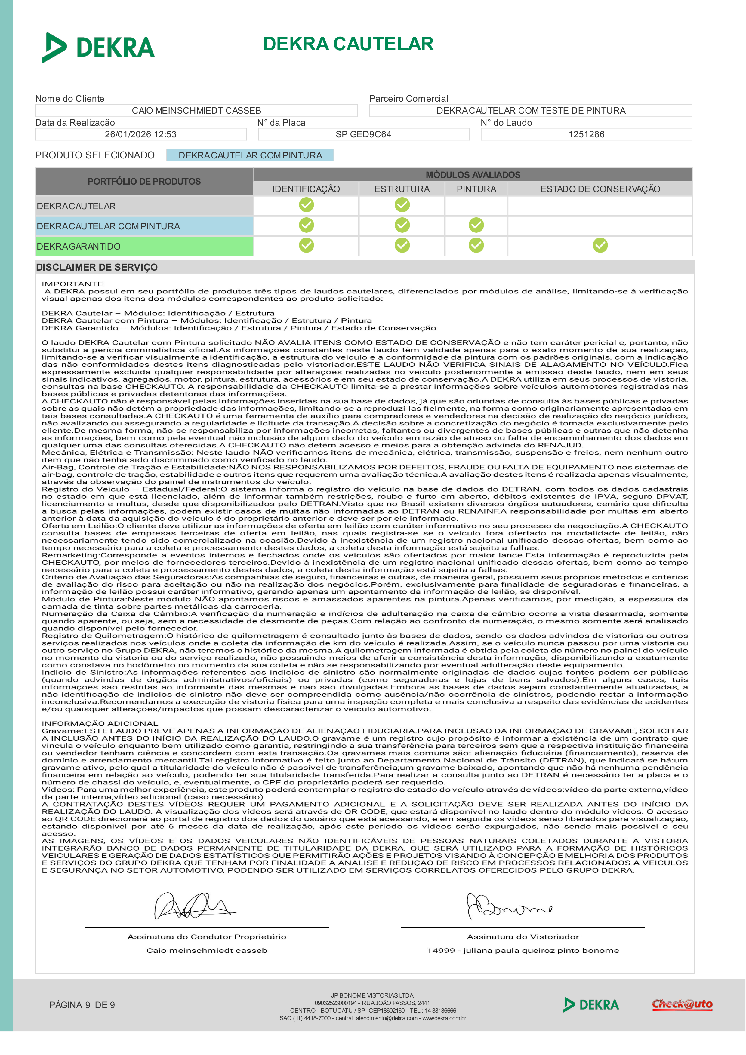 Acompanha perícia cautelar de procedência.