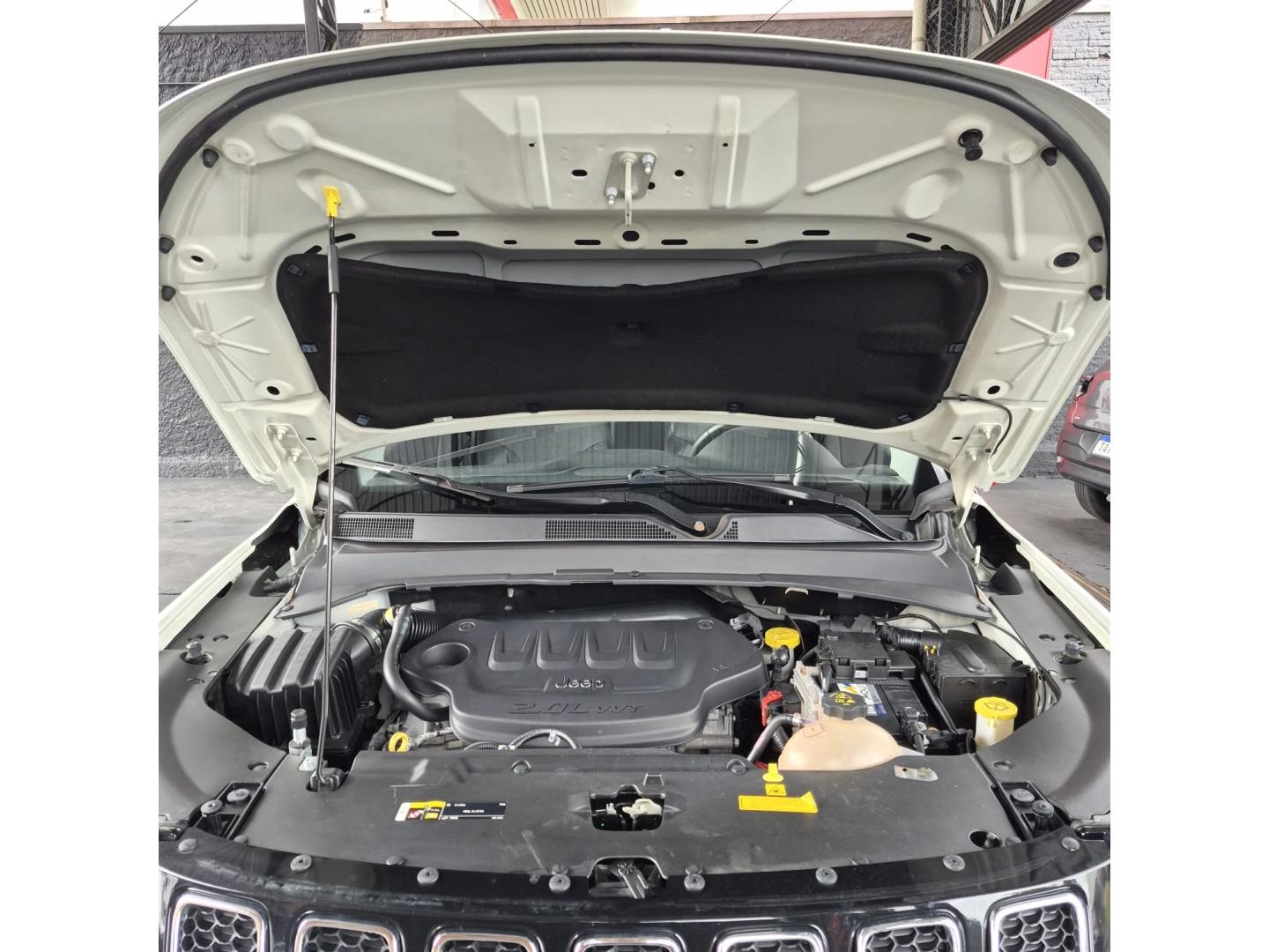 O Jeep Compass 2.0 Limited 2018 Flex é um SUV médio equipado com motor 2.0 Tigershark Flex de quatro cilindros e 16 válvulas, que entrega até 166 cv de potência e 20,5 kgfm de torque, associado a câmbio automático de 6 marchas e tração dianteira. O modelo conta com direção elétrica, suspensão independente nas quatro rodas tipo McPherson e freios a disco nas quatro rodas, oferecendo bom nível de conforto e estabilidade. Com 4.416 mm de comprimento, entre-eixos de 2.636 mm e porta-malas de 410 litros, o Compass combina espaço interno, tecnologia e desempenho equilibrado para uso urbano e rodoviário.