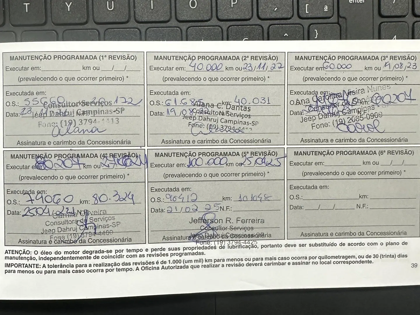 - Revisado em concessionária