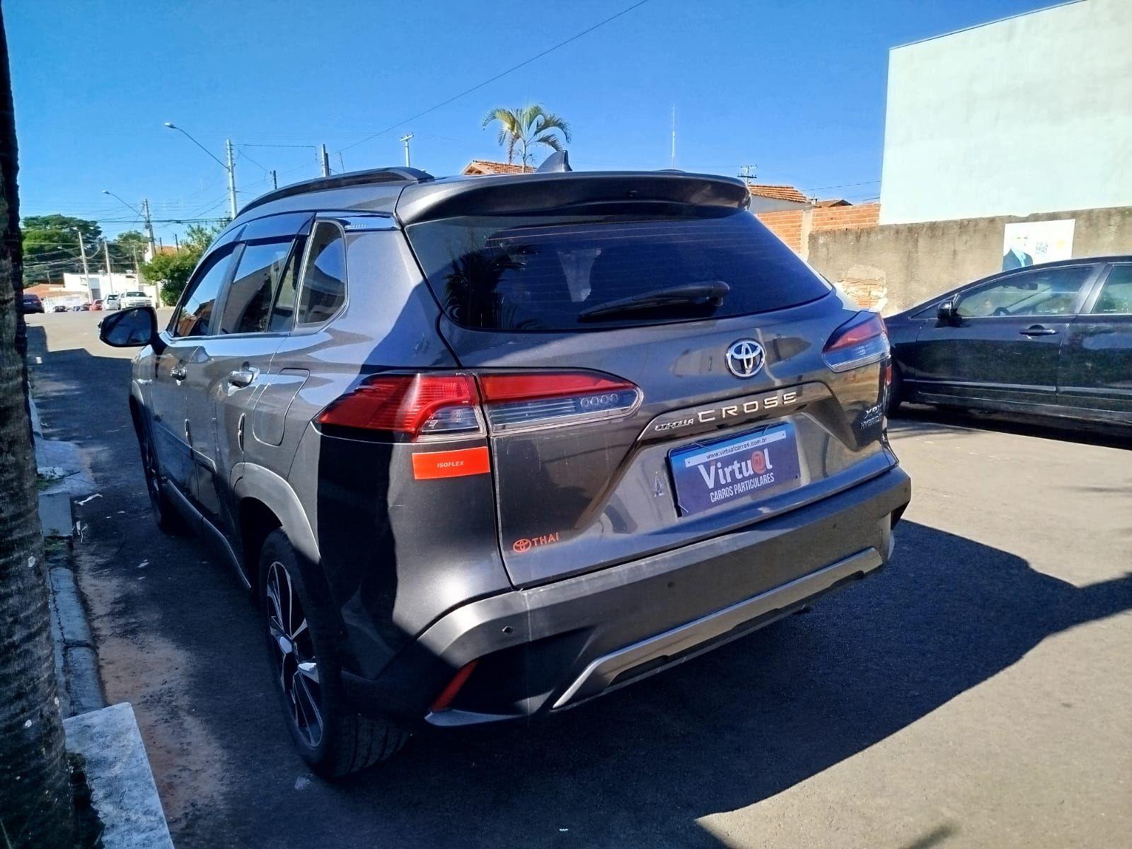 o toyota corolla cross xrx hybrid 1.8 2024 e o suv medio ideal para quem busca tecnologia hibrida e economia sem abrir mao do conforto e desempenho. com motor flex combinado a um motor eletrico, oferece potencia combinada de 122 cv, garantindo uma conducao suave e eficiente. seu consumo e um dos grandes destaques, com excelente autonomia tanto na cidade quanto na estrada, proporcionando economia real no dia a dia. o porta-malas de 440 litros acomoda bem as bagagens, enquanto o espaco interno garante conforto para cinco ocupantes. na seguranca, o corolla cross traz freios abs, multiplos airbags, controle de estabilidade e tracao, alem de assistentes avancados como alerta de colisao frontal, ponto cego e frenagem automatica de emergencia, garantindo protecao para toda a familia. o conforto e completo, com ar-condicionado automatico de duas zonas, bancos revestidos em couro, ajuste eletrico no banco do motorista e teto solar eletrico, alem de tecnologias que facilitam a conducao, como controle adaptativo de velocidade e assistente de permanencia em faixa. a conectividade e outro ponto forte, com central multimidia, espelhamento de celular, conexao usb e bluetooth, alem de carregador por inducao e computador de bordo. um suv hibrido moderno, economico e tecnologico, perfeito para quem valoriza sustentabilidade e conforto em um so veiculo.