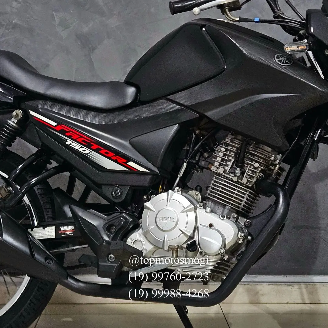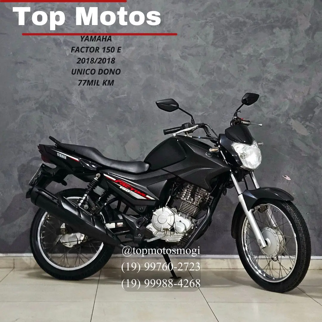 -20182018 -77mil km -unico dono pegamos sua moto de menor ou maior valor no negocio! entre em contato e saiba mais sem compromisso. financiamos em ate 48x ou parcelamos no cartao em ate 21x! ? top motos mogi ? otavio: 19 99760-2723 ? rafael: 19 99988-4268 factor 150 e 2018 motor 149 cc monocilindrico com desempenho suave e consumo economico no dia a dia. painel simples, freio dianteiro a disco e visual funcional voltado para praticidade urbana.