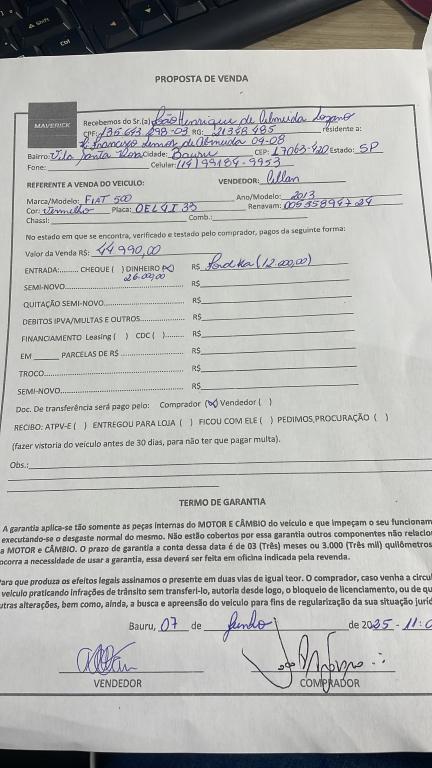 Dados do Veículo: