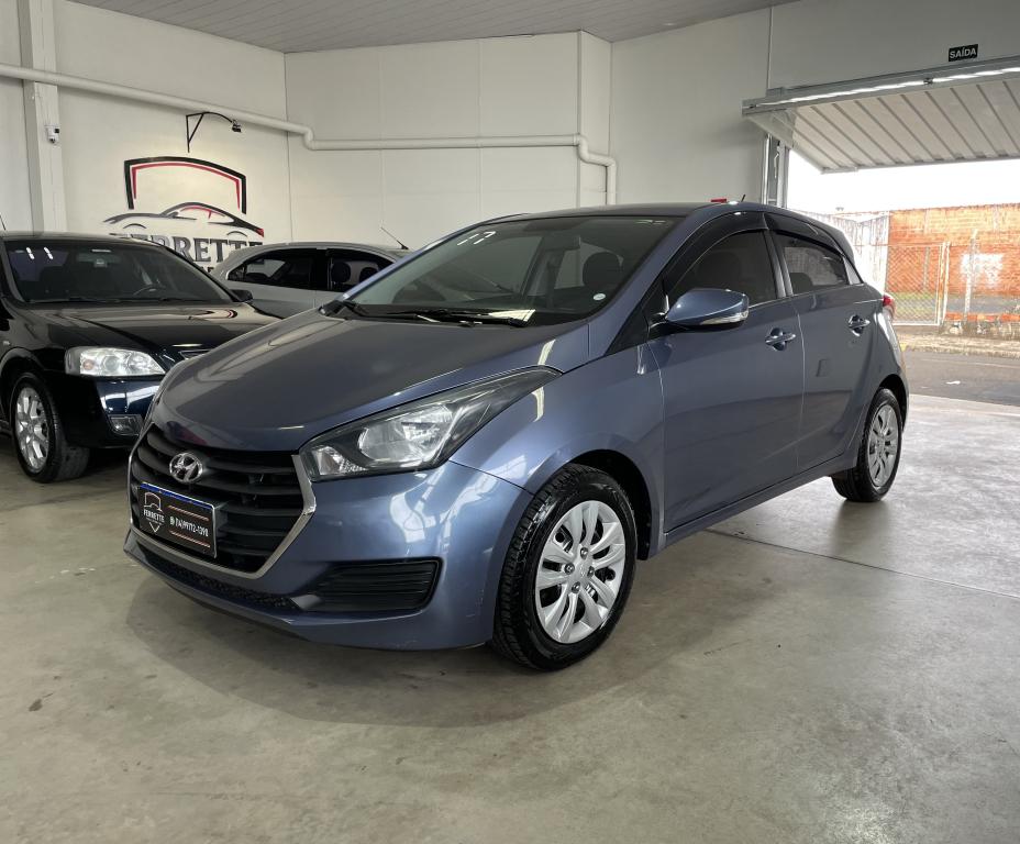 Hyundai HB20 Hatch, ano 2017, na cor azul, combustível flex, com 80 mil quilômetros rodados.
