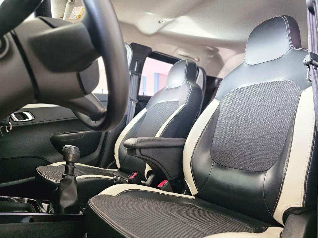 Bancos com acabamento exclusivo: mistura de couro e tecido mesh com detalhes brancos