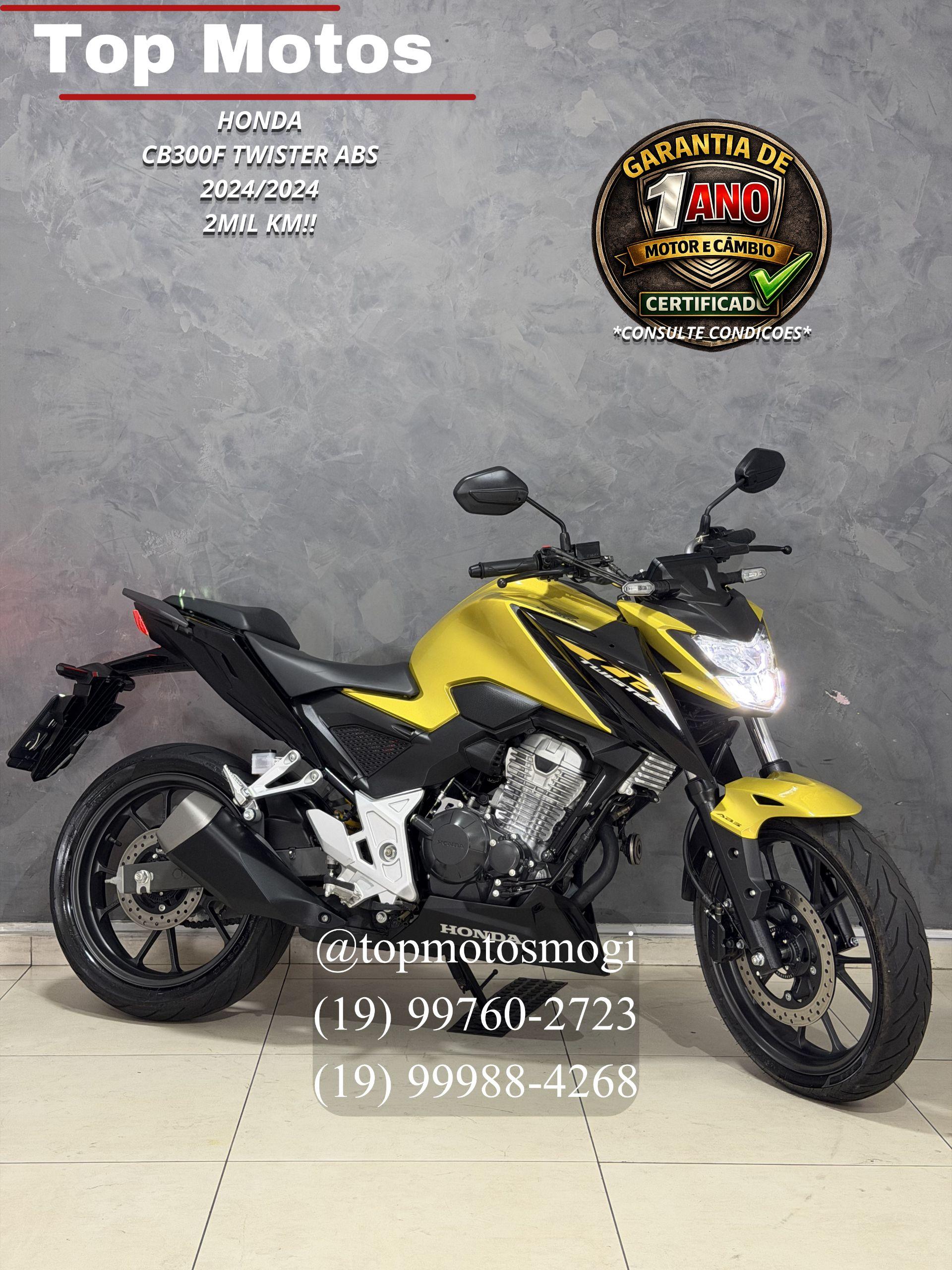 -20242024 -2mil km!! -sem detalhes -garantia motor e cambio de 1 ano consulte condicoes -pegamos sua moto de menormaior valor em negocio!!entre em contato para melhores informacoes. -financiamento em ate 48x -cartao de credito em ate 21xmediante cotacao, solicite uma simulacao sem compromisso!! ? top motos mogi ? otavio: 19 99760-2723 ? rafael: 19 99988-4268 twister 300 abs 2024 motor 293 cc monocilindrico com cerca de 24,5 cv, entrega forte e economica com otima resposta no uso urbano e rodoviario. freios abs nas duas rodas, embreagem assistida e deslizante, painel digital e visual naked moderno com pegada esportiva. ??