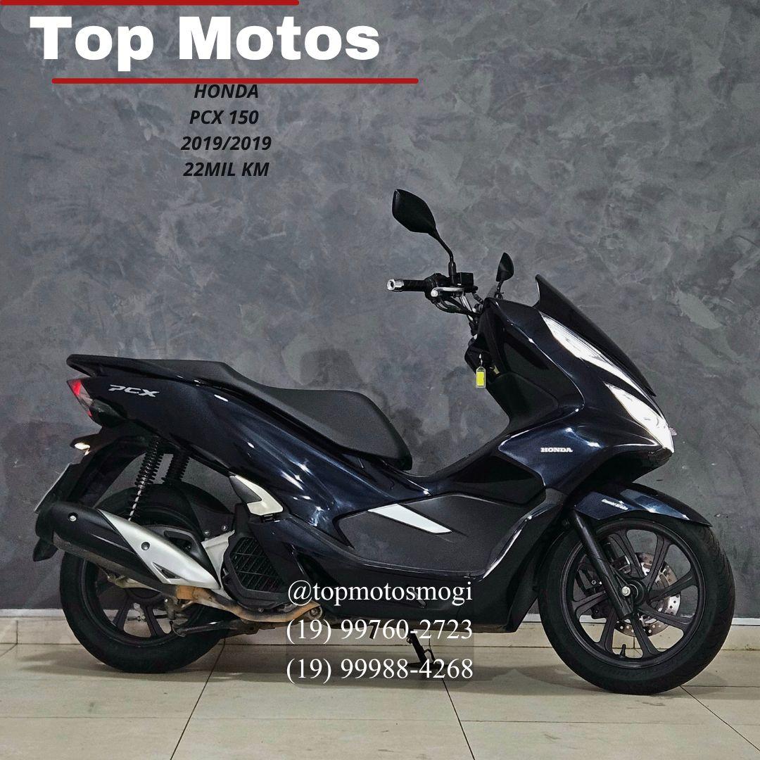 -20192019 -22mil km pegamos sua moto de menor ou maior valor no negocio! entre em contato e saiba mais sem compromisso. financiamos em ate 48x ou parcelamos no cartao em ate 21x! ? top motos mogi ? otavio: 19 99760-2723 ? rafael: 19 99988-4268 **honda pcx 150 2019** motor monocilindrico de 149,3 cc com cerca de 13,2 cv e torque de 1,38 kgf·m, transmissao automatica cvt. freio dianteiro a disco com abs ou cbs, pneus 10080?14 e 12070?14, tanque de 8 litros, farol full?led e amplo compartimento sob o banco de 28 litros.