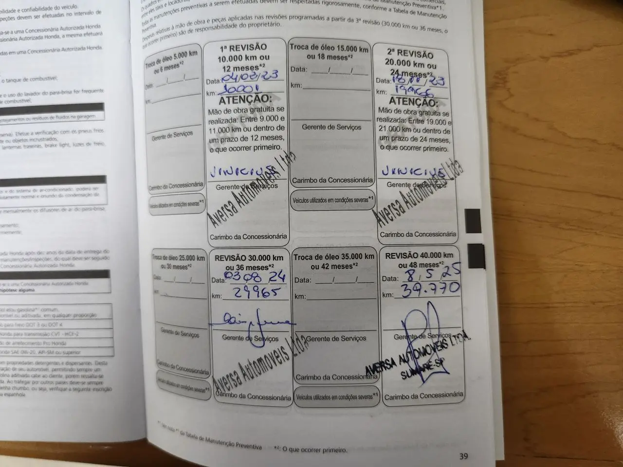 - Revisado no agenda do carro