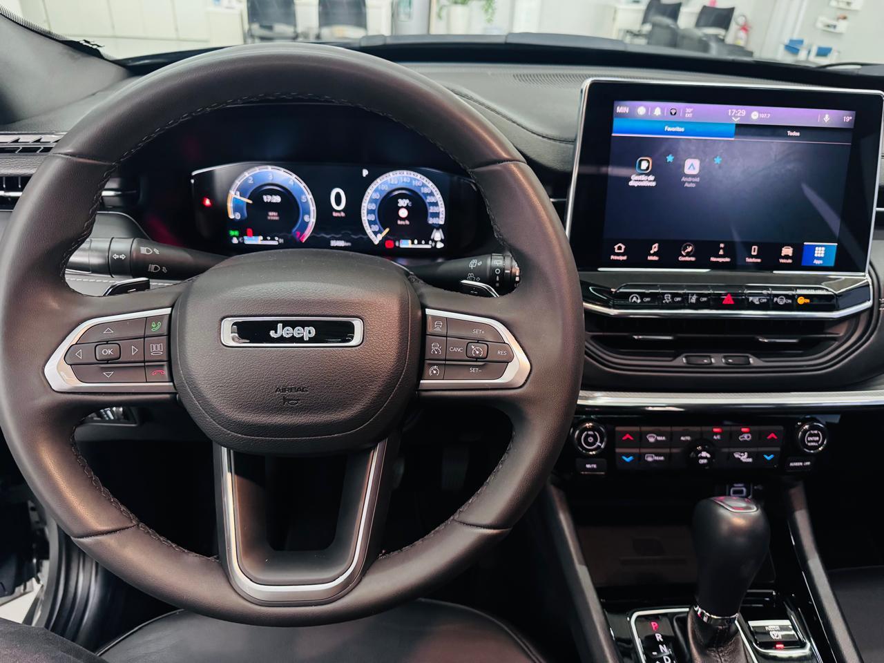 jeep compass s 1.3 t270 automatico 2023 motor 1.3 turbo cambio automatico carregador de celular por inducao teto solar park assist sistema de faixa controle de estabilidade multimidia carplayandroid som bluetooh direcao eletrica computadora de bordo desembacador traseiro ar condicionado digital camera de re sensor de re rodas de liga leve 35.000km impecavel otima procedencia manual e chave copia revisoes em concessionaria garantia de fabrica cautelar ok